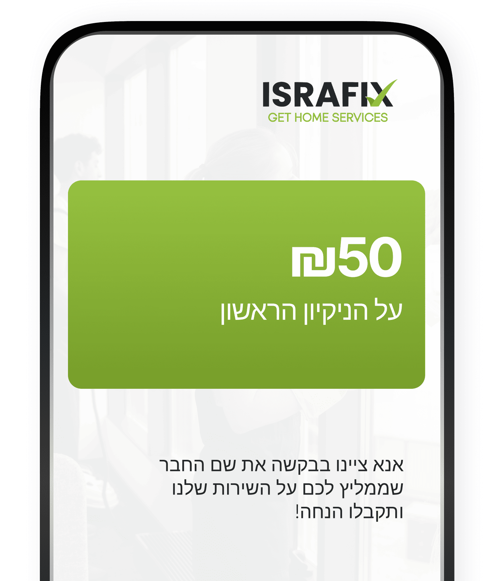 כדי להודות לכם על האמון, אנו מעניקים לכם 50 ₪ ל הזמנה הראשונה שלך ב Israfix.